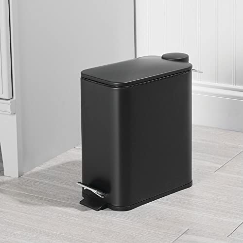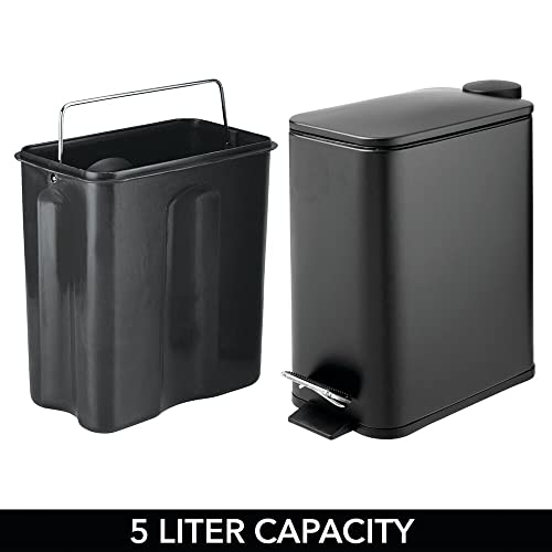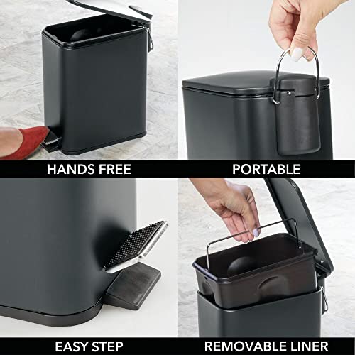 mDesign Slim Metal Rectangle 1.3 Gallon Trash Can with Step Pedal, Easy-Close Lid, Removable Liner -